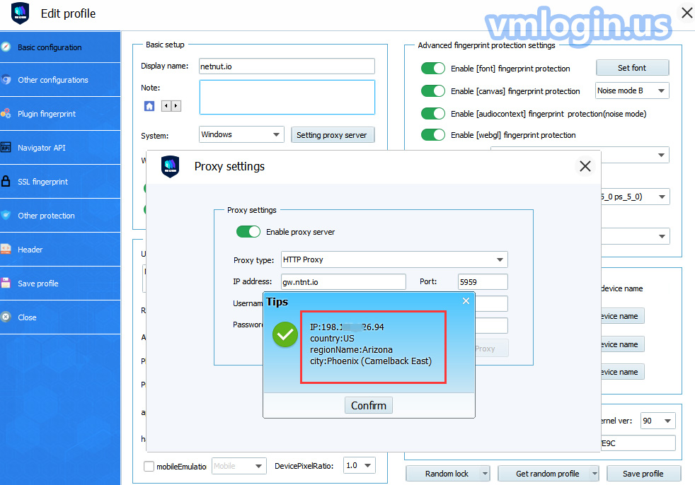 6. Basic configuration-->Setting proxy server-->Enable proxy server. For rotating residential IPs type, fill in the credentials as follows:
