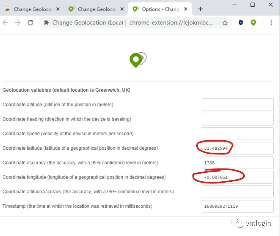 那如何来隐藏 Geolocation 技术的定位呢,我们可以安装一个 Change Geolocation (Location Guard) 扩展插件,来实现定位的自定义。下面我们以VMLogin来演示: