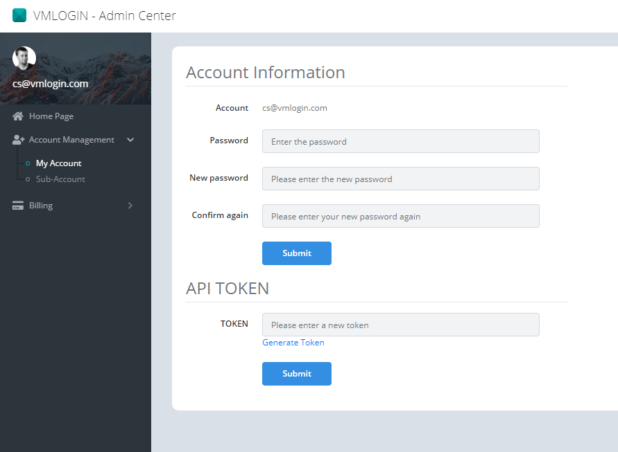 VMLogin API token is the user's API token, which requiresthe user to login to the Web background.