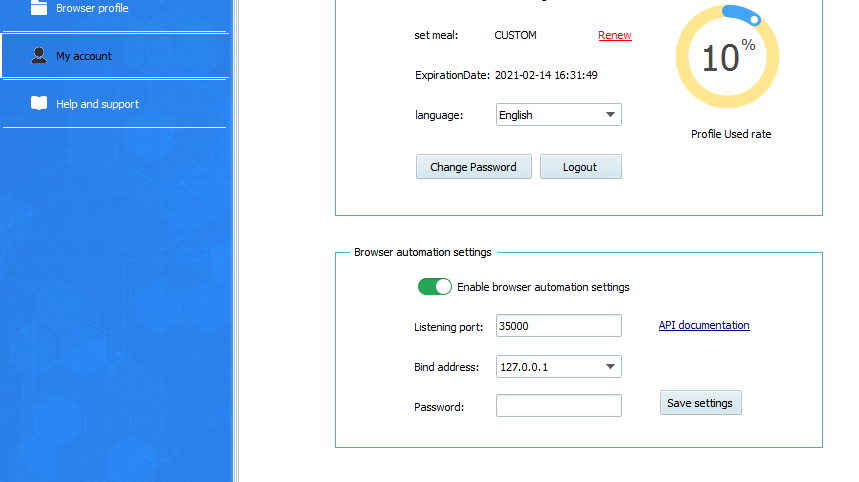 VMlogin client -> My Account -> Browser automation settings -> you need to