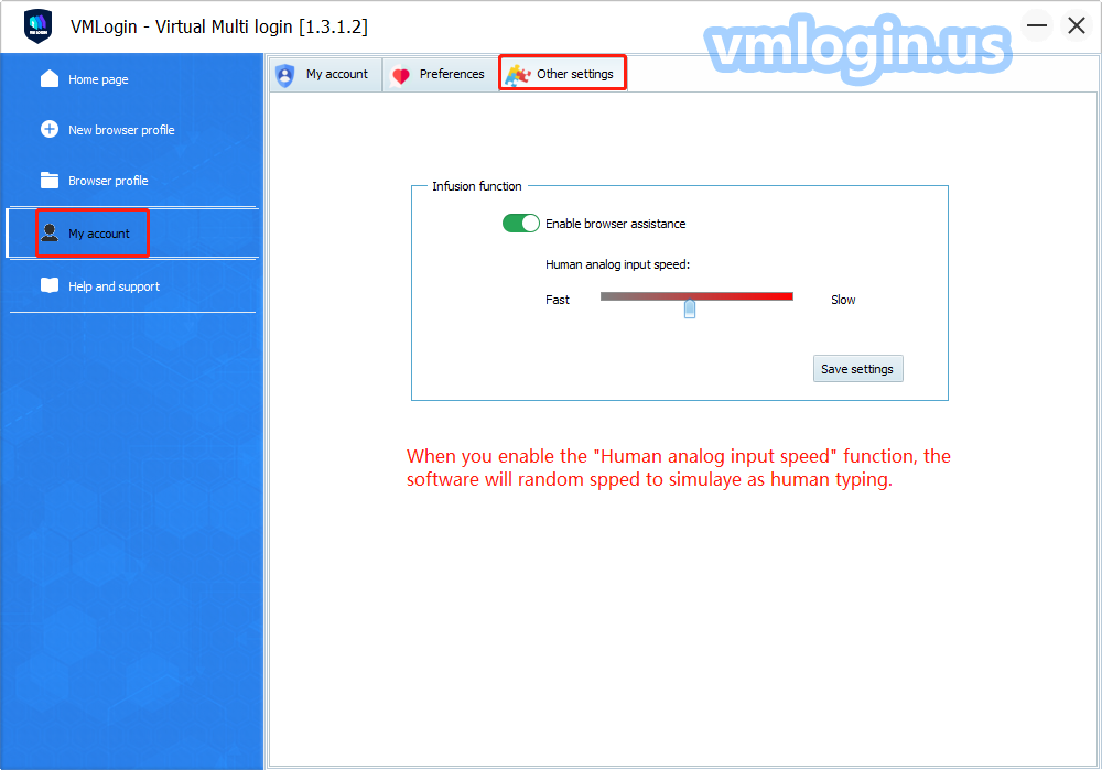 When you open the “Human analog input speed”option,and website loaded, you can use the right-click menu and paste input simulation human analog typing effect.