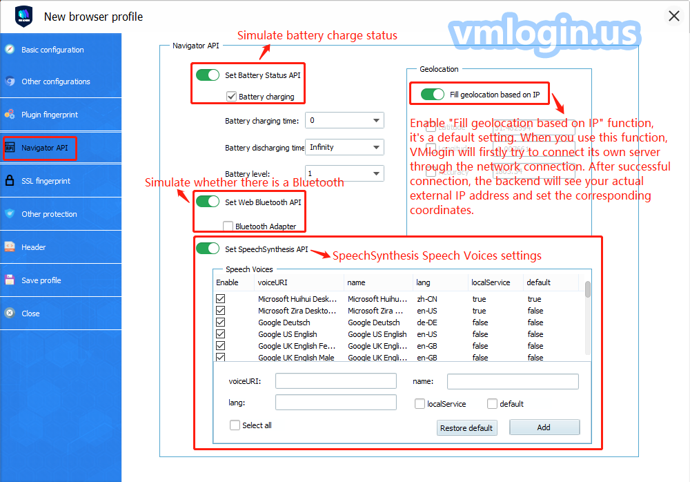 Some primary users do not understand the meaning of the related options when configuring a new browser for VMLogin. Here is a detailed description.