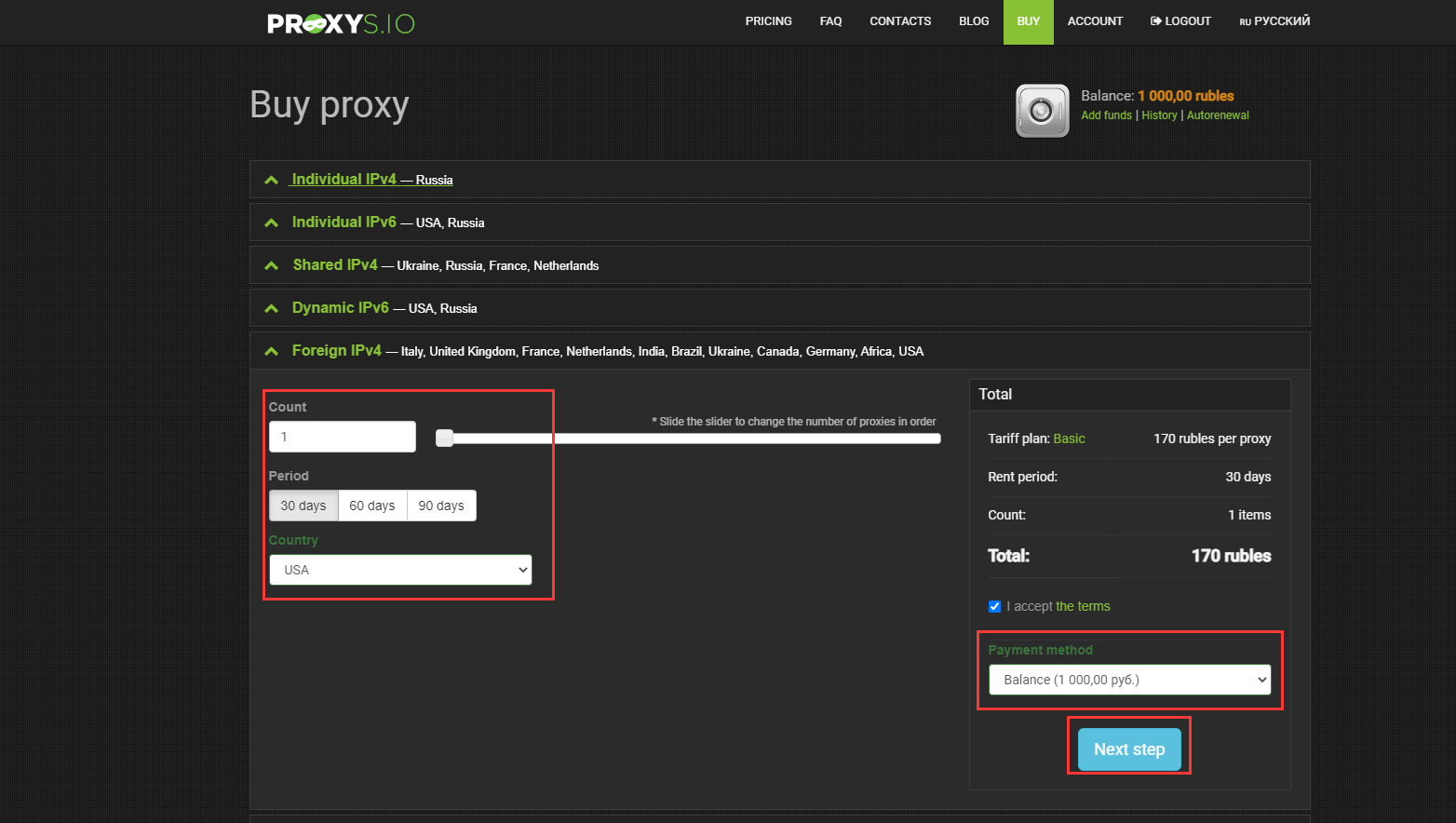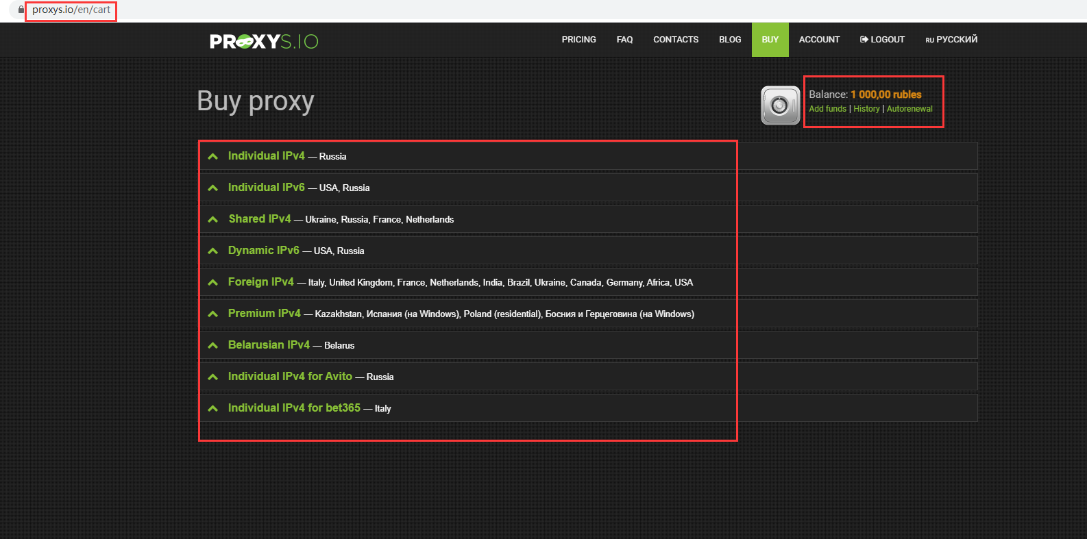 3. Open the Proxys.io official website, log in the background of cart, choose the IP the proxy which you need.