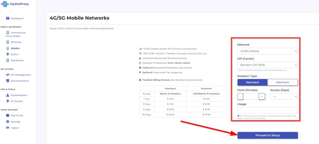 Step 1 – Navigate and set up your HydraProxy account.