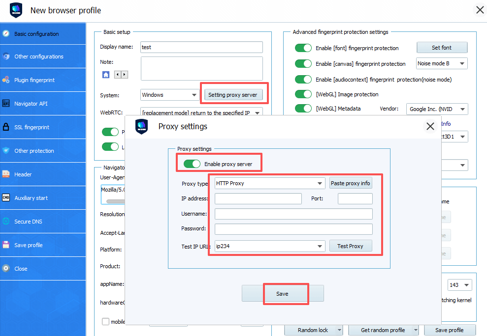 3. Setting up the proxy server with your browser profile.