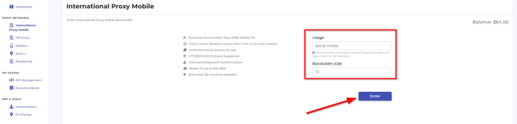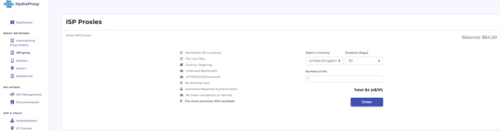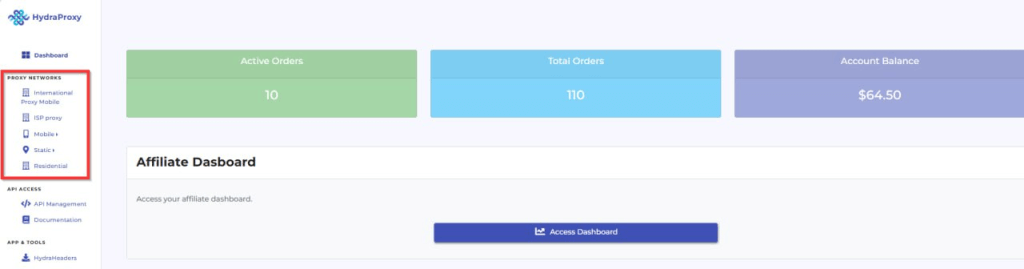 (1) Open and log in HydraProxy website.