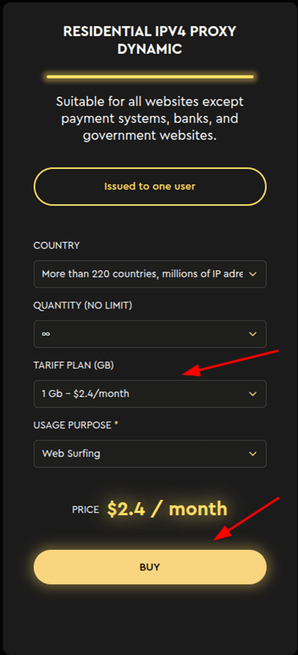 2. After registering, top up your balance using your preferred method and go to dashboard. Next, select a plan and click the "Buy" button.