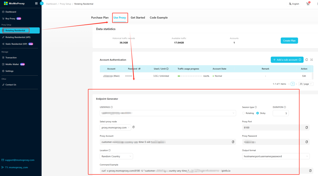 3. 选择所需代理类型(静态或动态住宅IP)及目标地理位置,生成代理列表。