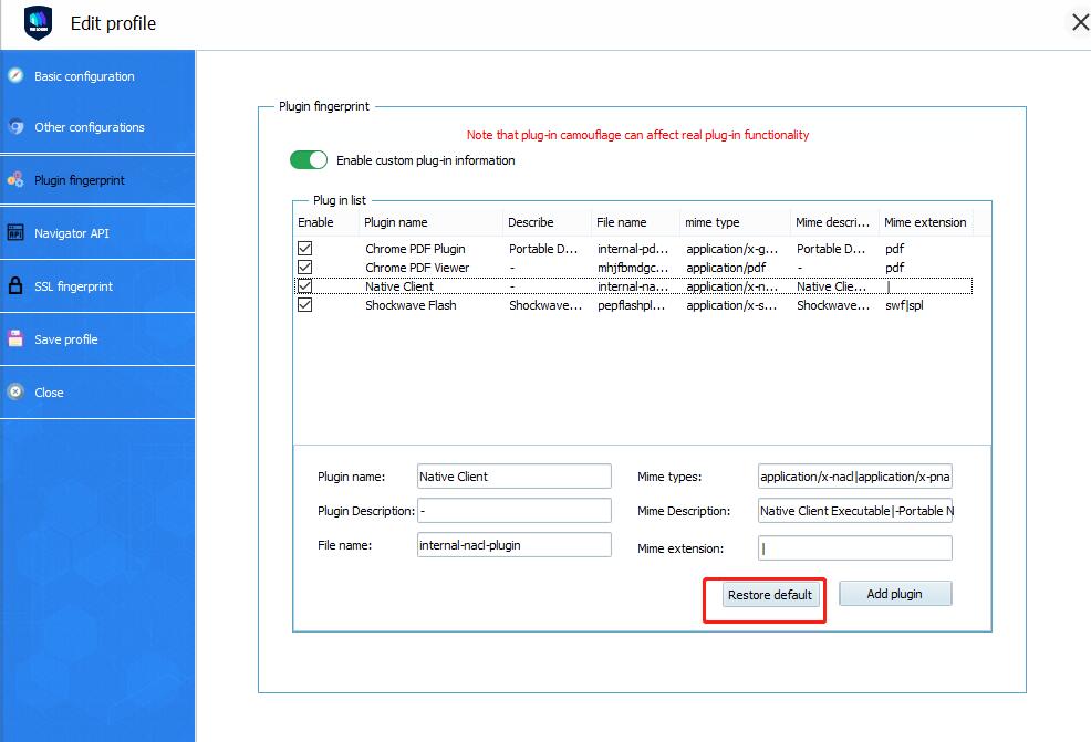2.Click “Restore default”, it will automatically generate 4 basic plugin informations.