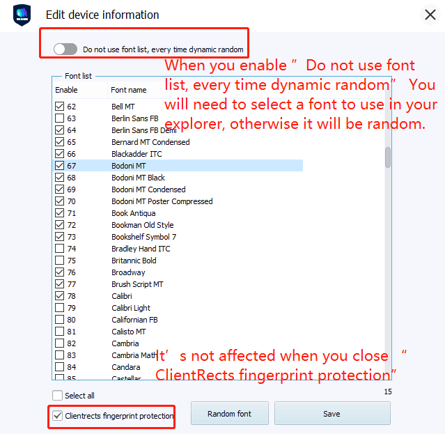 We are able to get in the font set up page, as shown above, it’s set default to random font.