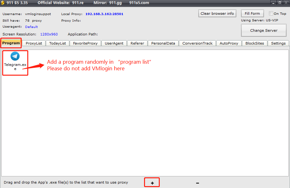 2.Add a program randomly to the program list, 911 S5 application requires users to select a program. Please do not add VMLogin here as it will get interfered.