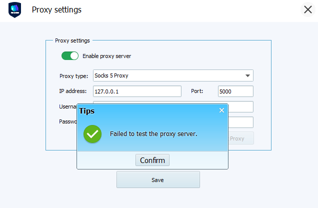 2. The 911 S5 system or line is unstable sometimes, which may cause the proxy test failure when you test it. You can test it later.