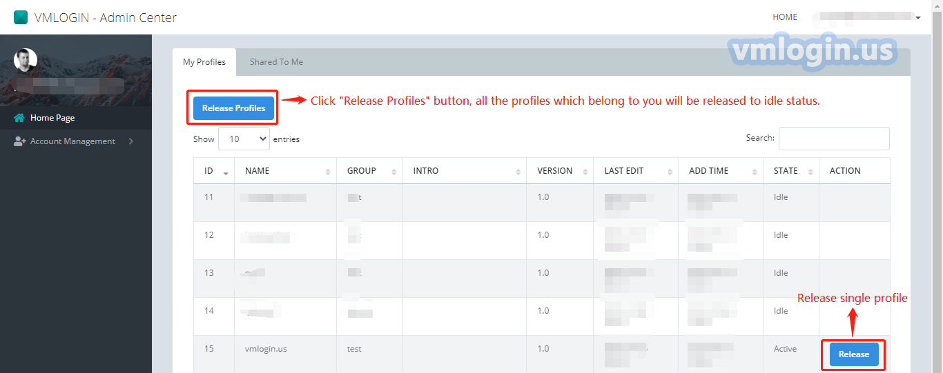 b.Login to the Web user backend dashboard. There is a release profiles button. You may release
